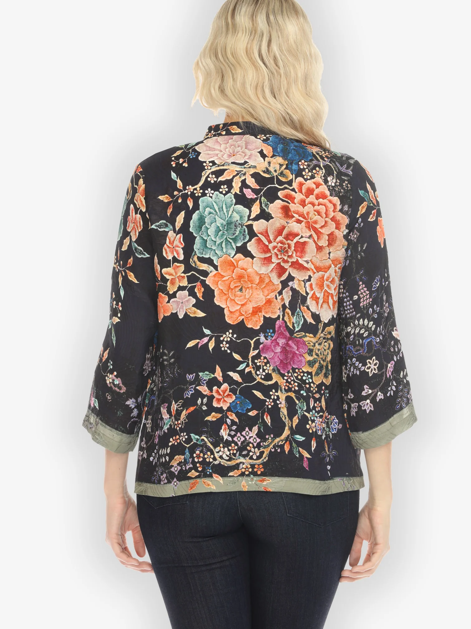 Vintage Flowers in Black Tummy Tuck Shirt